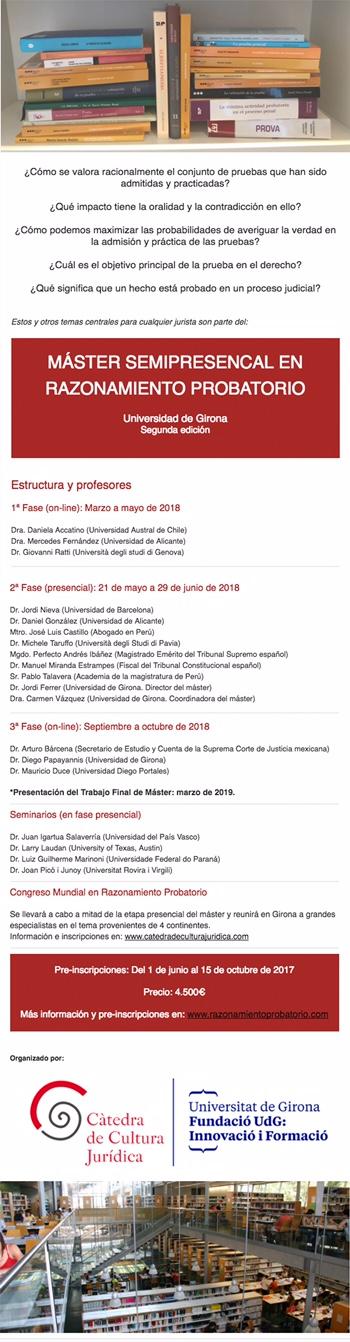 El título del máster describe el hilo conductor de todas las asignaturas que lo componen, pues con independencia del derecho probatorio de cada uno de los distintos sistemas jurídicos, hay herramientas epistemológicas indispensables para una mejor comprensión y/o aplicación de tales normas que nuestros alumnos podrán adquirir para sus diversas prácticas.