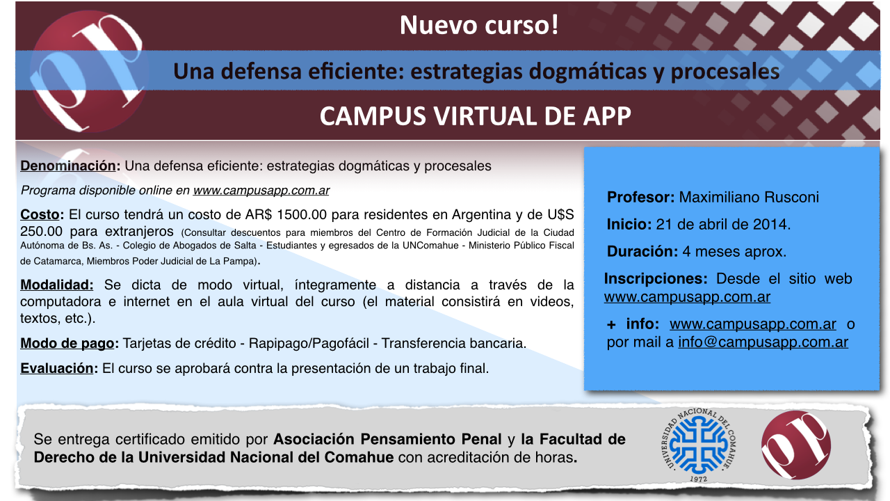Nuevo Curso: «Una defensa eficiente: estrategias dogmáticas y procesales».