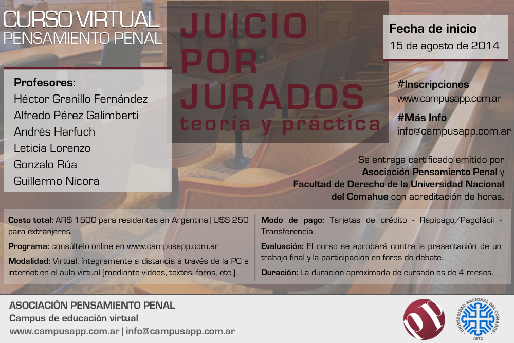 Juicio por jurados. Teoría y práctica Inicia 15 de agosto de 2014 Más info en www.campusapp.com.ar Programa aquí