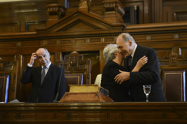 “Malala” Garrigós y “el Negro” Bruzzone estuvieron entre los más aplaudidos por el auditorio, y hasta fueron ovacionados. En el público había funcionarios, jueces, fiscales y defensores, pero también familiares y amigos de los magistrados. Se destacó la presencia de la procuradora general Alejandra Gils Carbó, la defensora general Stella Maris Martínez, y el secretario de Justicia de la Nación, Julián Álvarez.