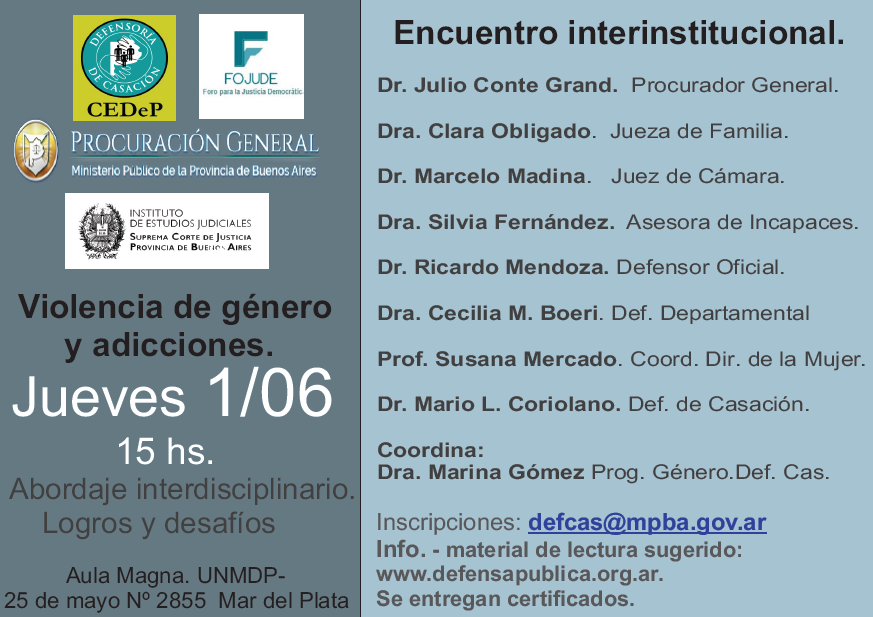 Se dictará los días 28, 29 y 30 de junio de 2017 de 15 a 19 hs en la ciudad de Rosario. El costo total es $3000 que se pueden pagar con tarjeta de crédito. Para anotarte tenes que ingresar a www.pensamientopenal.org.ar/capacitacion El programa está disponible aquí Por más información escribinos a capacitacion@pensamientopenal.org.ar Cupos...
