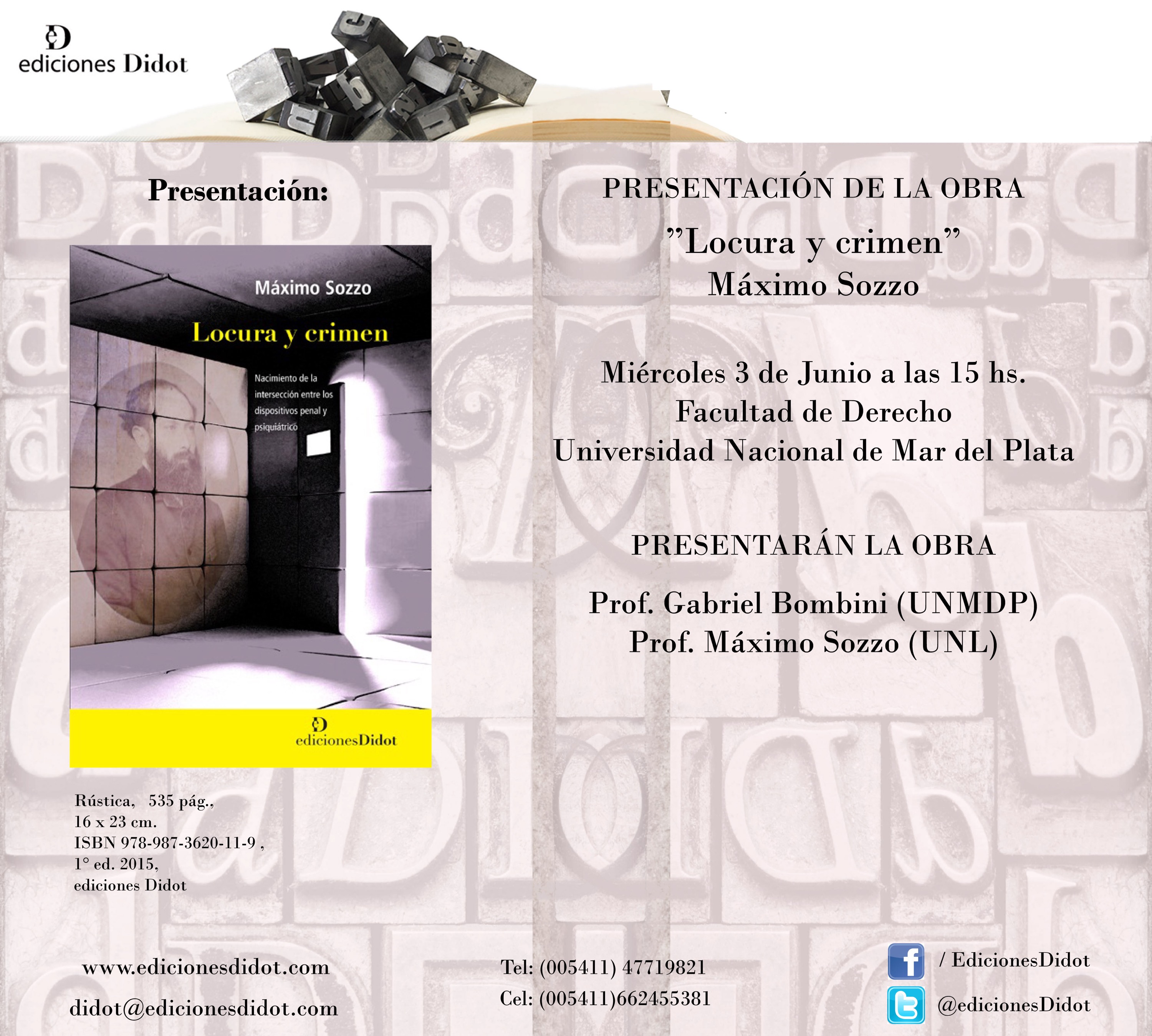 Nuevo curso Sociología de la penalidad. Dictado por el prof. Sozzo en nuestro campus virtual a partir del 28 de agosto de 2015. Programa disponible aquí Más información aquí