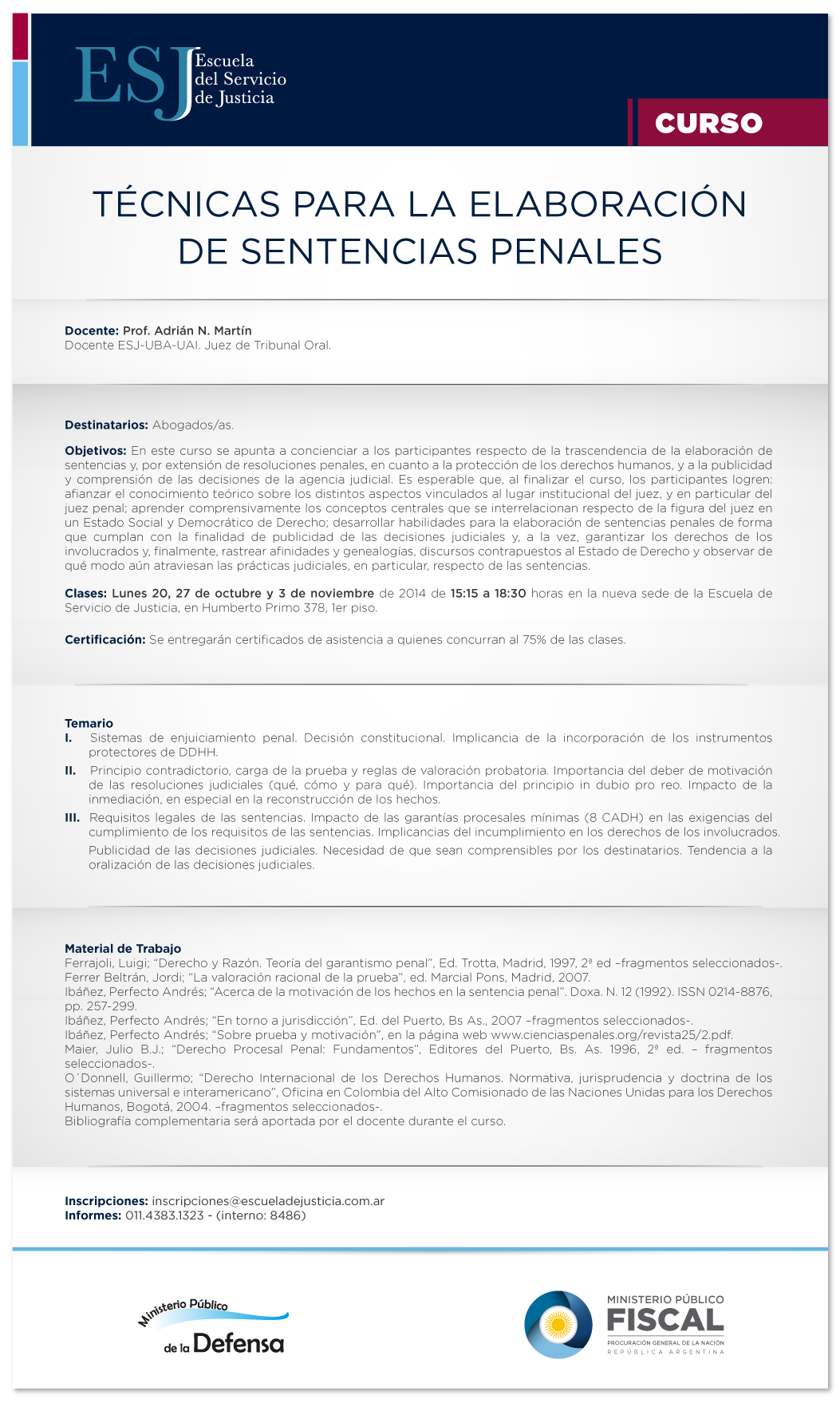 Curso. Técnicas para la elaboración de sentencias penales. Escuela del Servicio de Justicia. Prof. Adrián Martín 09/10/2014Académicas