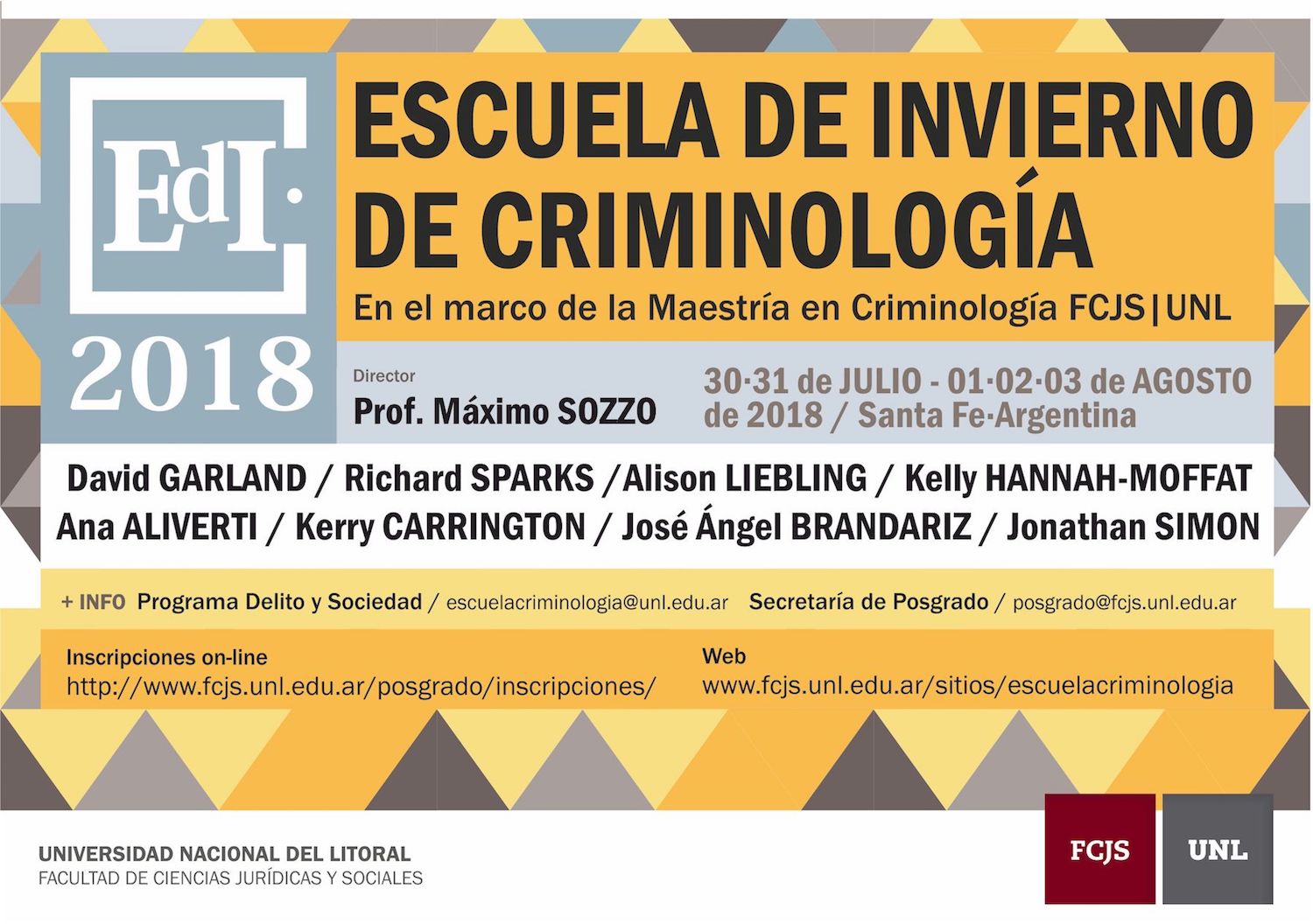 Escuela de invierno de Criminología 2018. Santa Fe. Argentina 19/04/2018Académicas, Noticias más info en www.fcjs.unl.edu.ar/sitios/escuelacriminologia