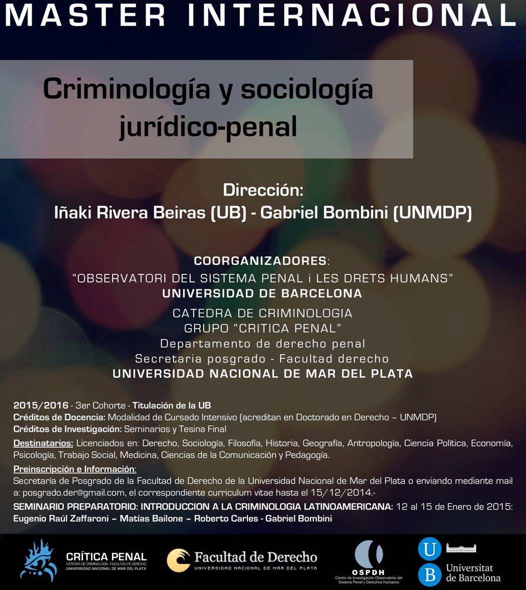 Master internacional. Criminología y sociología jurídico-penal. Universidad Nacional de Mar del Plata 12/11/2014Académicas