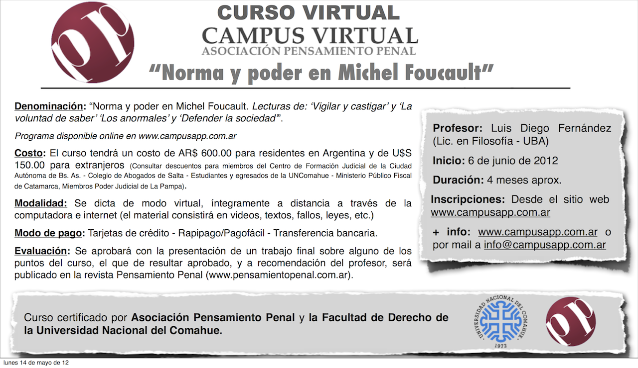 Nuevo curso Campus APP. «Norma y poder en Michel Foucault».