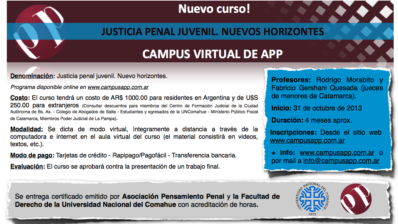 Dictado por los prof. Rodrigo Morabito y Fabricio Gershani Quesada (jueces de menores de Catamarca)