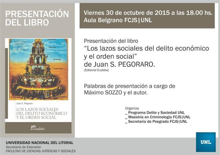 Presentación del libro: «Los lazos sociales del delito económico y el orden social» de Juan S. Pegoraro 21/10/2015Académicas