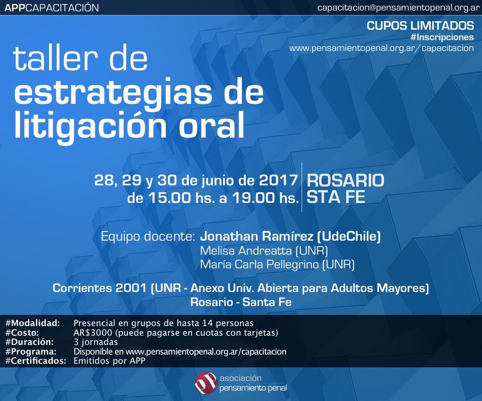 Se dictará los días 28, 29 y 30 de junio de 2017 de 15 a 19 hs en la ciudad de Rosario.